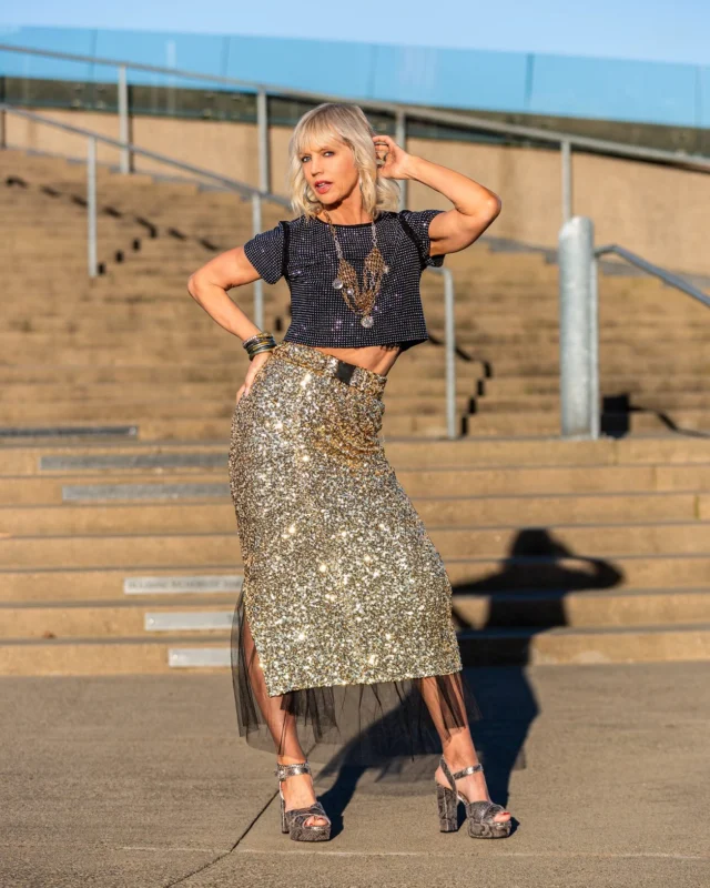 #over50fashion #styleover50 #sequinskirt #platformsandals #shoelovers